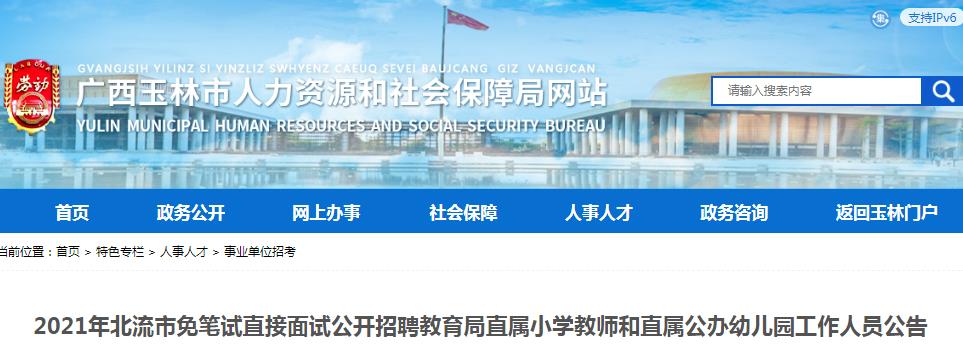 北流市教育局在玉林市人力资源和社会保障局网站发布面试公告。