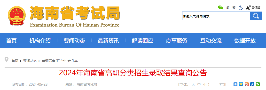 【2024年海南省高职分类招生录取结果查询公告】相关文章: