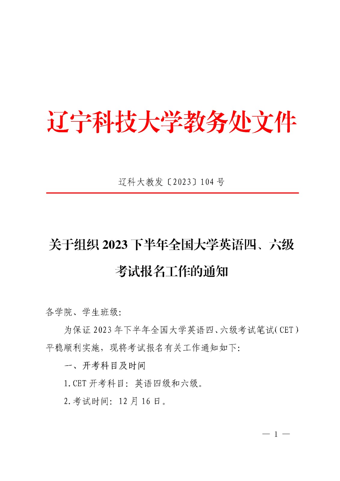 【2023下半年辽宁科技大学英语四、六级考试报名工作通知[9月14日起报名]】相关文章: