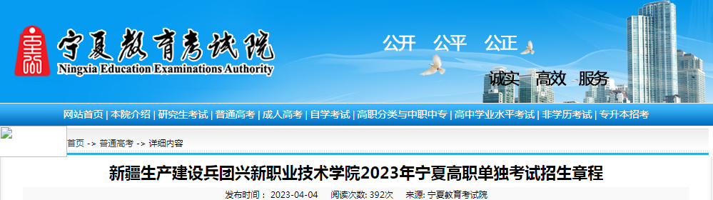 【新疆生产建设兵团兴新职业技术学院2023年宁夏高职单独考试招生章程】相关文章: