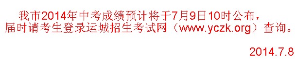 【2014年河南运城中考成绩查询入口已开通】相关文章: