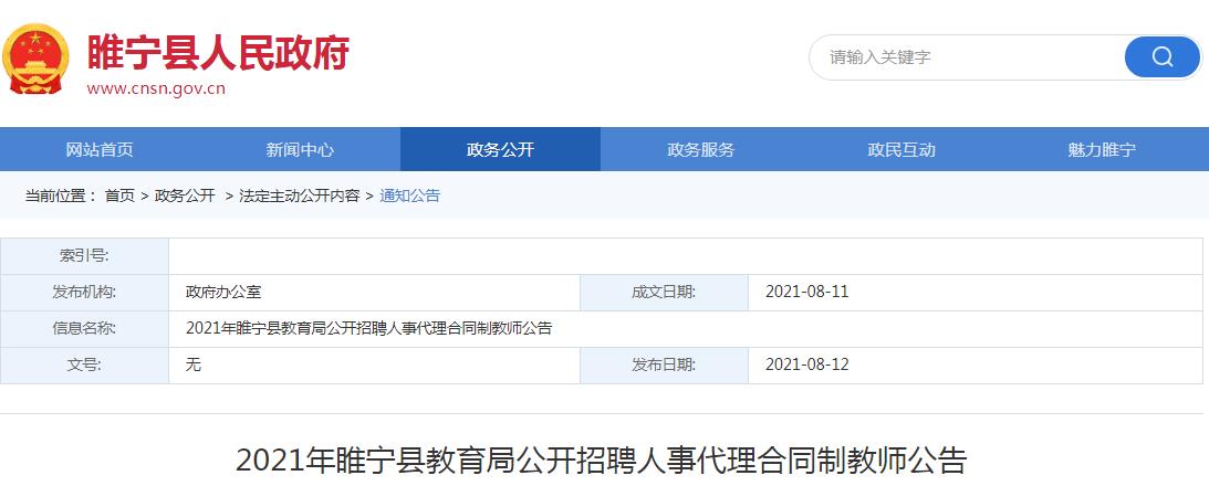 【2021江苏徐州睢宁县教育局招聘人事代理合同制教师300人(8月14日开始报名)】相关文章: