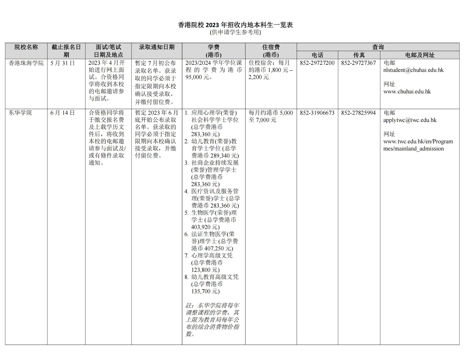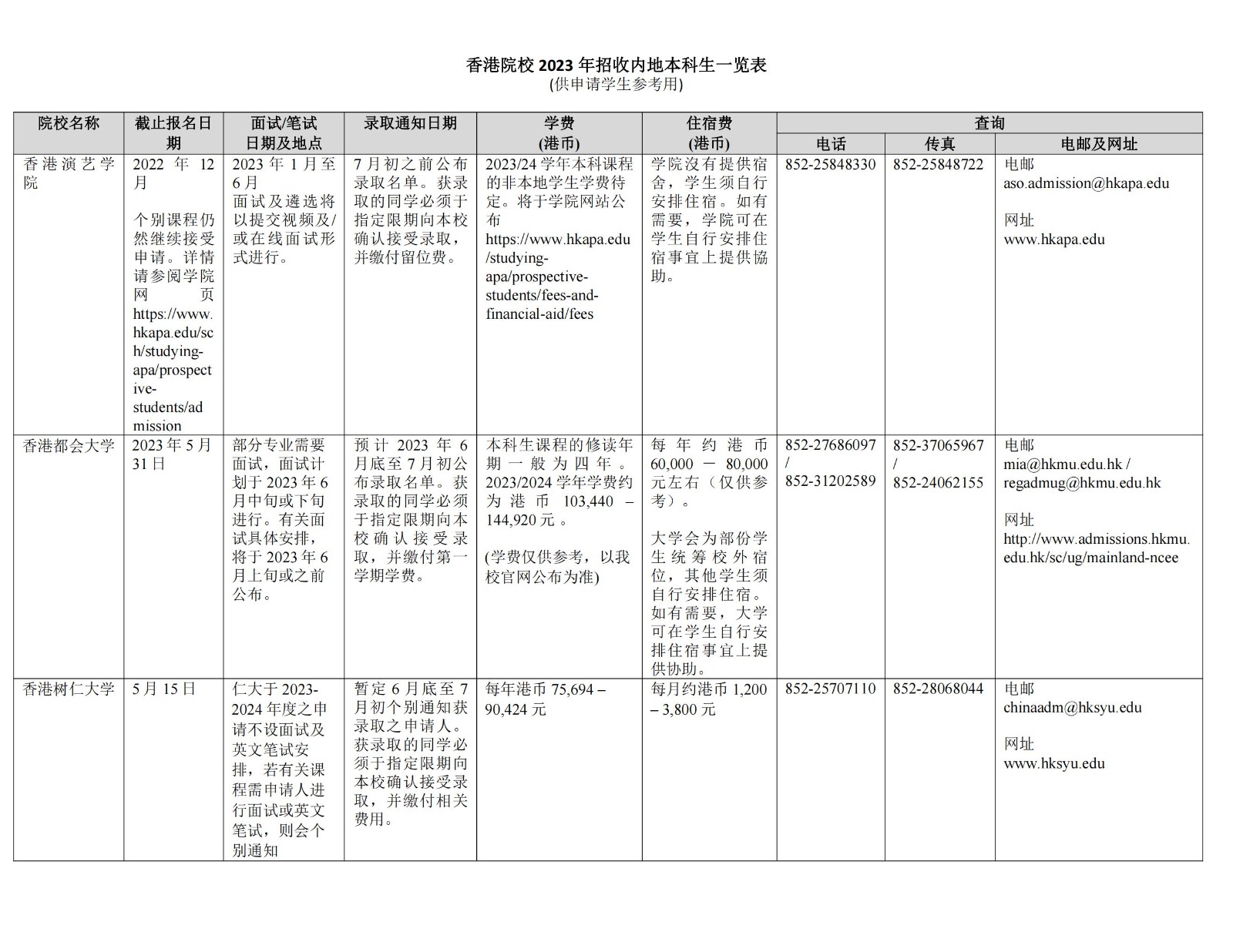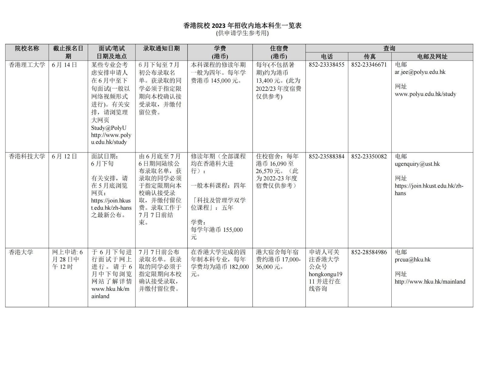原文标题:香港院校2023年招收内地本科生一览表